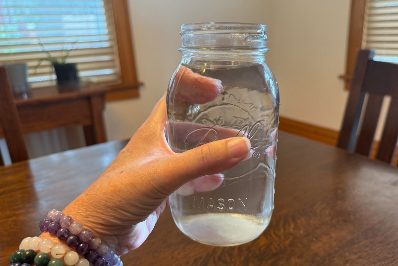 Every morning, I fill a quart-size mason jar with my Berkey-filtered water and add 2–3 teaspoons of sole water. For any other jars I drink throughout the day, I’ll usually add just 1 teaspoon.